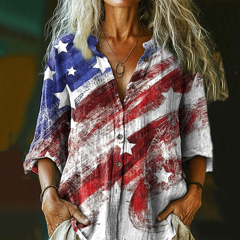 Women's Vintage Independence Day Flag Button-down Shirt