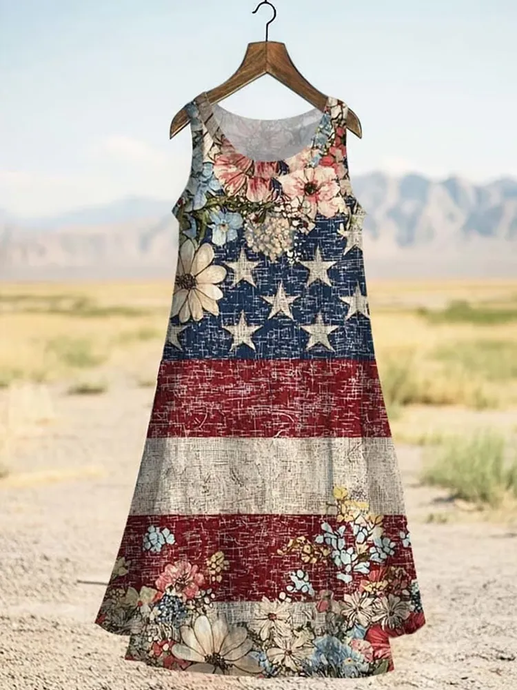 Women's Vintage Independence Day Linen Blend Tank Dress