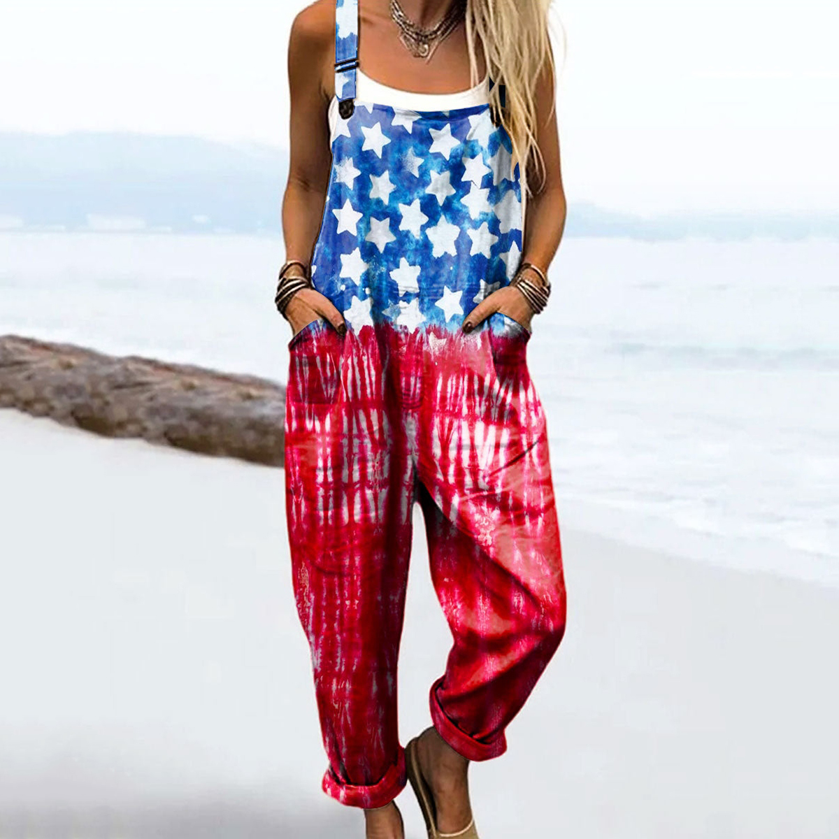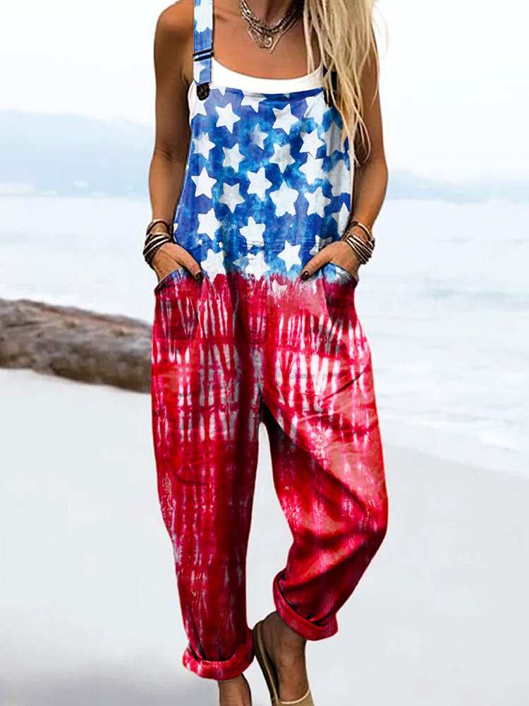 Women's Vintage Independence Day Print Casual Jumpsuit