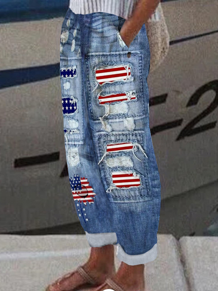 Women's Vintage Independence Day Print Linen Blend Casual Pants