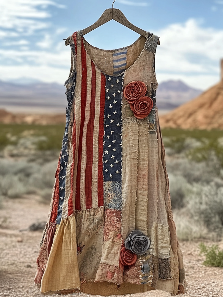 Women's Vintage Independence Day Rose Art Linen Linen Tank Dress