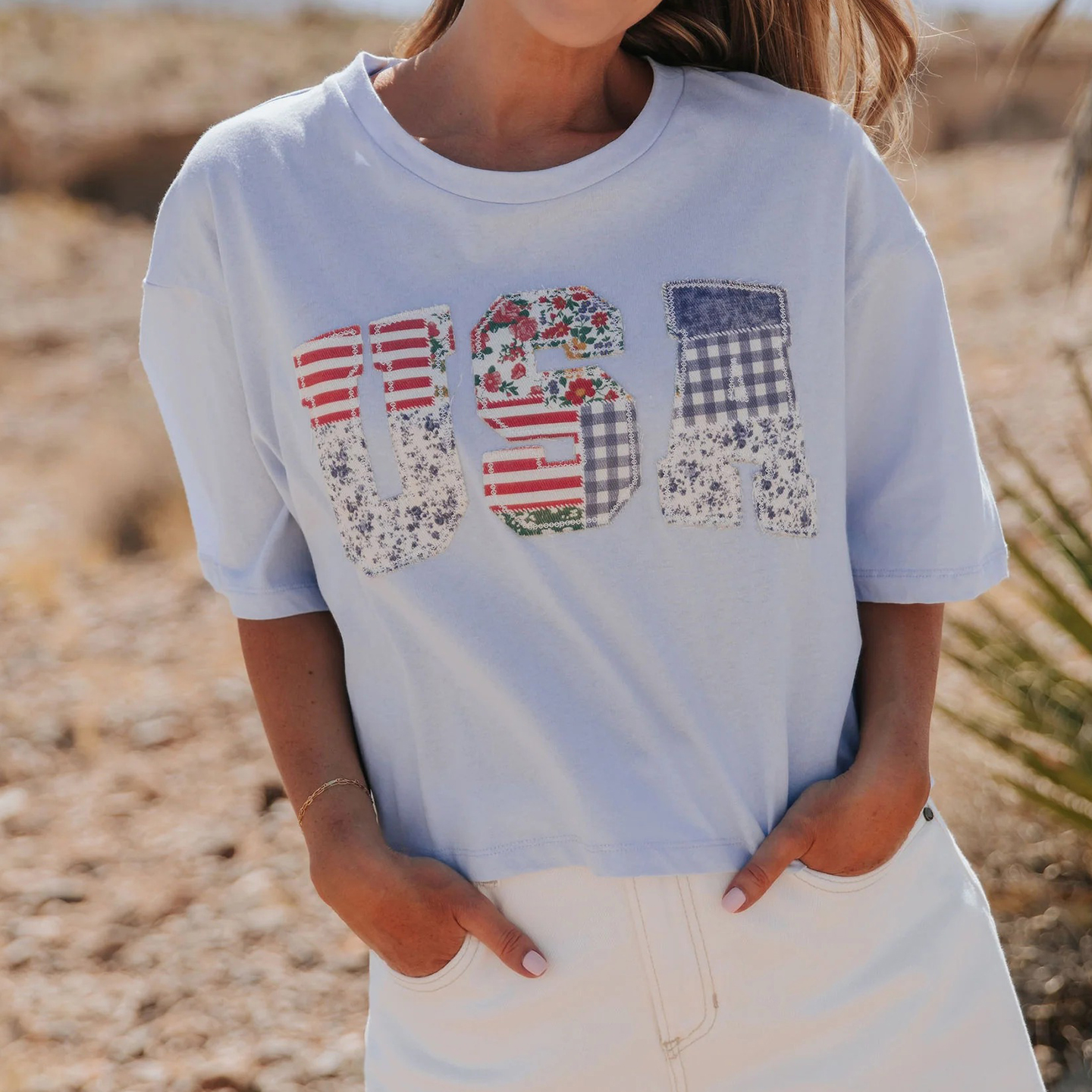 Women's Vintage The Floral Usa Patchwork Independence Day T-shirt