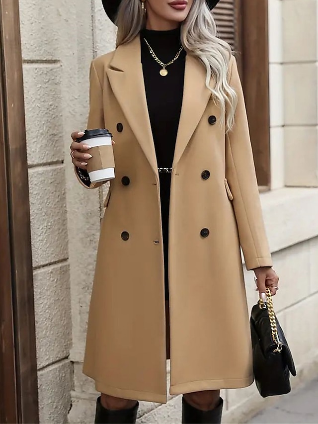 Women's Winter Coat Long Overcoat Double Breasted Lapel Trench Coat Thermal Warm Windproof Jacket Fall Casual Street Outerwear Long Sleeve Fall Winter Black Khaki