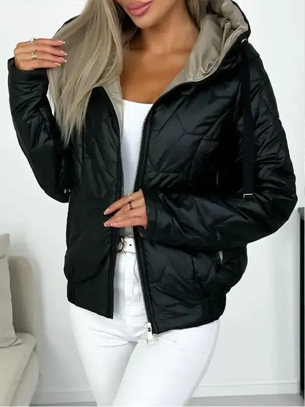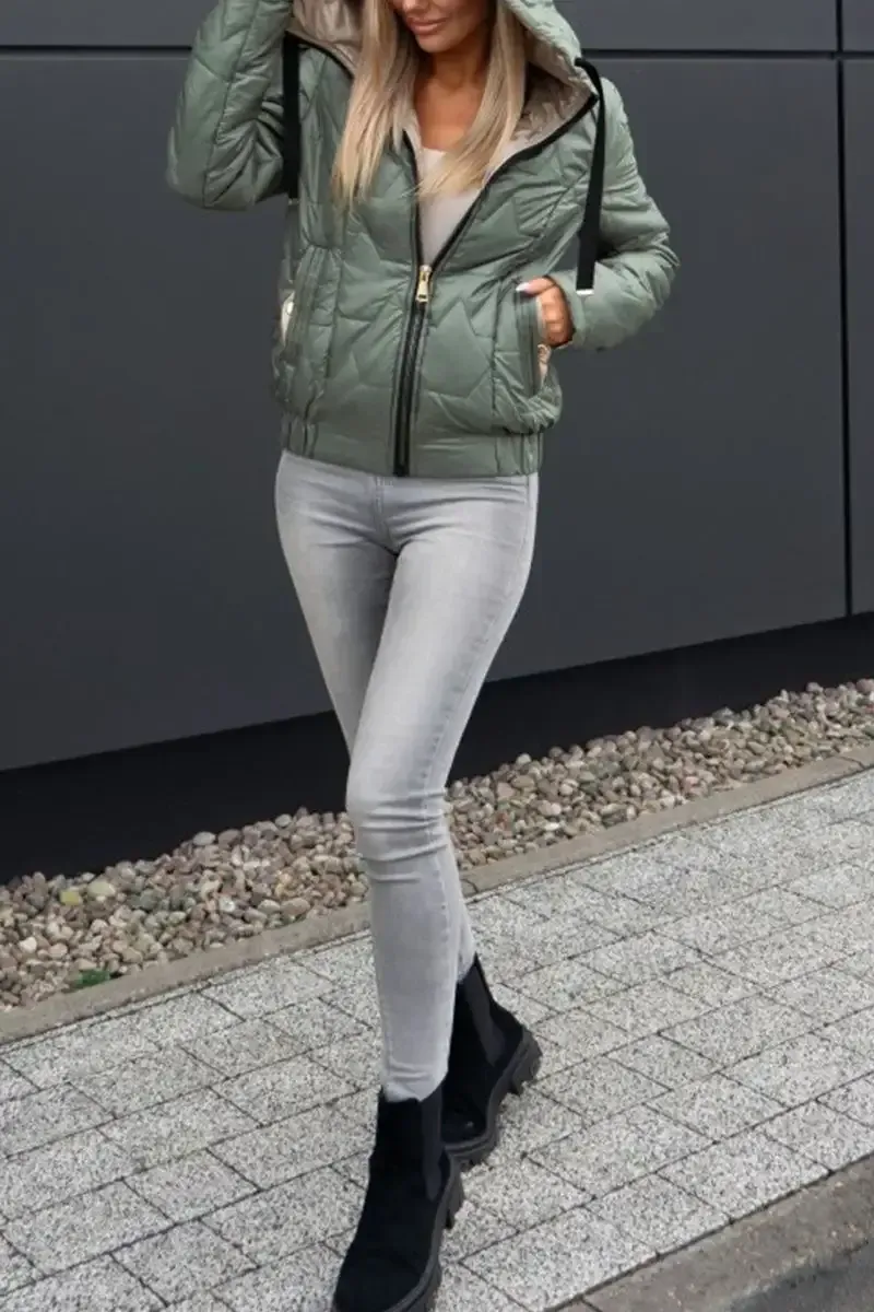 Women's Winter Multi-colored Warm Zipper Hooded Short Jacket