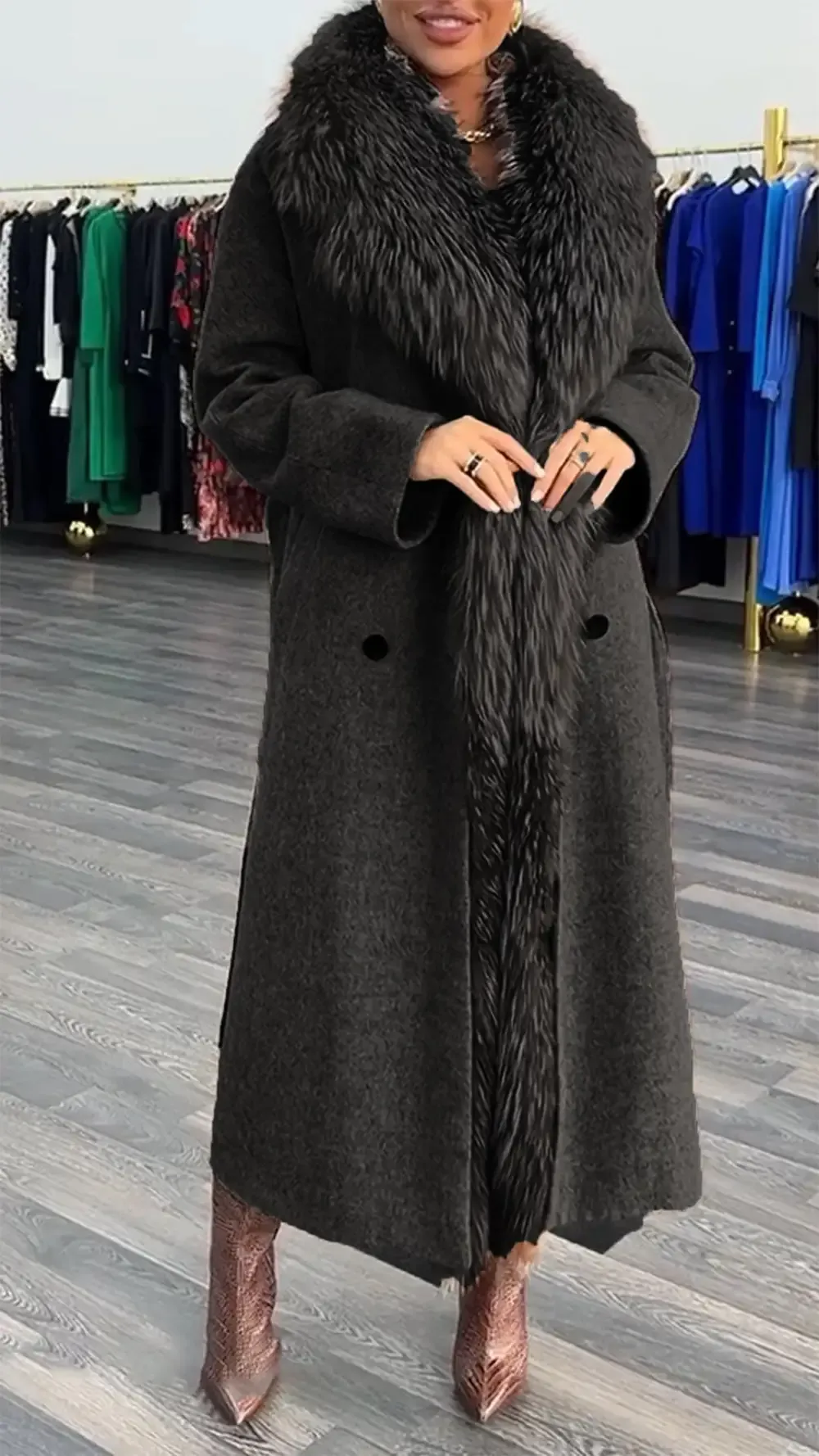 Women's Woolen Long Coat with Large Lapel